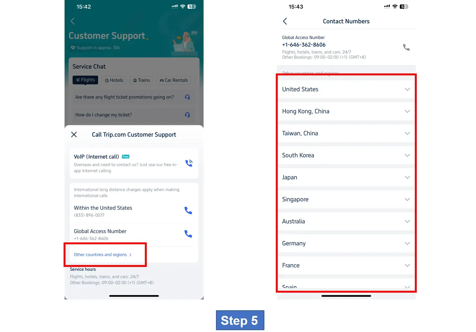 Step 5: Find the Trip.com Customer Service for Other Countries/Regions