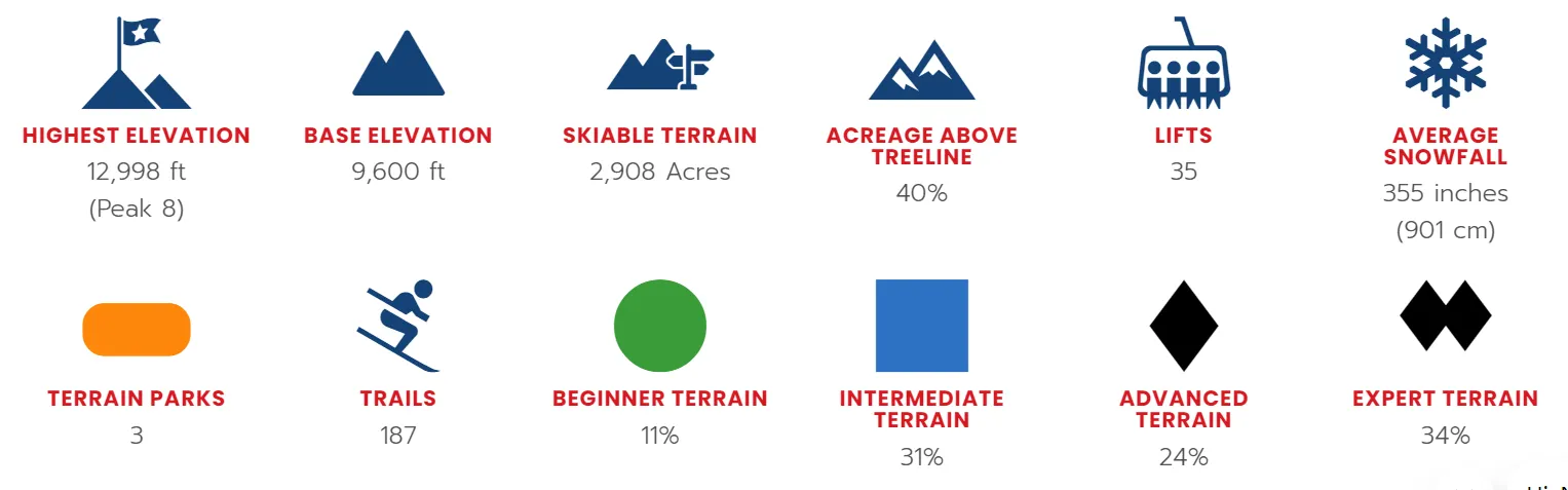 Breckenridge boasts nearly 3,000 acres of terrain across Five Peaks, including 187 trails and some of the best lift-accessible high alpine terrain in the country.
