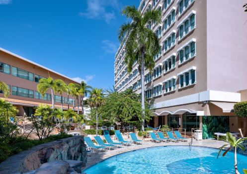 - Vibe: Modern beachfront, close to SJU, lively pool vibe