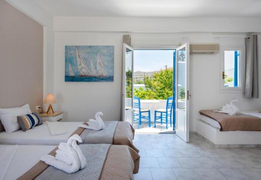 Marinos Hotel offers top-notch services and amenities, ensuring guests experience utmost comfort.Share your photos and respond to emails at your convenience, thanks to the free Wi-Fi internet access offered by hotel.Experience the wonders of Paros Island with ease by utilizing the services provided at car hire. Visitors can take advantage of complimentary parking directly at the hotel.Reception services such as luggage storage and safety deposit boxes are available to accommodate your requirements. Traveling with minimal baggage is achievable at Marinos Hotel, as the hotel's dry cleaning service and laundry service ensures your garments stay fresh. Room amenities feature daily housekeeping, allowing you to unwind and make the most of your visit.The hotel maintains a completely smoke-free zone, providing a breathable atmosphere. Smoking is limited to specified smoking zones.Each accommodation at Marinos Hotel is thoughtfully created and adorned to provide visitors with a comfortable, home-like atmosphere.In certain rooms, the hotel offers linen service and air conditioning for guest convenience and satisfaction. At Marinos Hotel, the uniquely tailored rooms provide a configuration choice resembling a balcony or terrace. In select rooms, guests can enjoy a touch of amusement with the availability of cable TV for their entertainment. Rest assured, in a few chosen rooms, you will find the convenience of a refrigerator, a coffee or tea maker and bottled water at your disposal. Marinos Hotel offers a hair dryer and toiletries in the restrooms of specific accommodations. Embark on your holiday experience in the most ideal manner. Commence each morning of your visit with an on-site breakfast.
