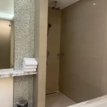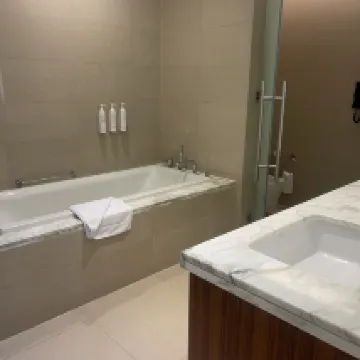 The room and bathroom are very nice and spacious. The bed is comfortable, and the shower pressure is great! The staff are very professional and make sure you’re happy with your stay. Overall, my stay was very comfortable - I would definitely recommend this hotel!