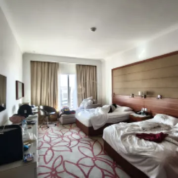 The location is absolutely excellent. It's right next to the large Al Wahda Mall, and there's a Lulu Hypermarket conveniently located downstairs, so you can find anything you need and dining options are plentiful. I booked a rate including breakfast, and it was incredibly rich and varied, with Chinese, Western, Indian, Pakistani, and Arabic options, all with Chinese names on the menu! The room was spacious, cleaned promptly, very tidy, and had a great view. I would definitely choose this place again if I have the chance.