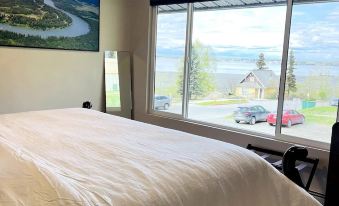 Stunning Views of Cook Inlet, Denali and Foraker! Enjoy Alaska living at it's finest from this 2 bedrooms (both rooms have King beds), 2-bath, 1 King electric blow up bed for LR, vacation rental nestled just steps from Elderberry Park! Offering a fully equipped kitchen and all the comforts of home, the house ensures an easy-going time in Anchorage as it sits within walking distance of local cafes, restaurants, bars and coastal trails. Minutes to airport, train station and port. Views to die for.