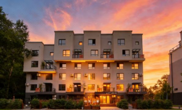The hotel is essentially a single building rented within a residential complex. The entrance faces the community courtyard. We arrived at 11 PM the first night, it was dark, so we didn't notice much. To get to our room from the parking garage, you have to go through the lobby, then outside, and then back in. The room has floor-to-ceiling windows, but you can't even open the curtains during the day! It's incredibly inconvenient!