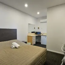 Very small & basic room but comfortable enough if you need a bed for a night or 2. Will need to provide your own cutlery / crockery as there is nothing beyond a couple mugs and the complimentary tea & coffee. Small microwave and bar fridge. Motel signage states foxtel available but we could only get standard TV stations which is fine.