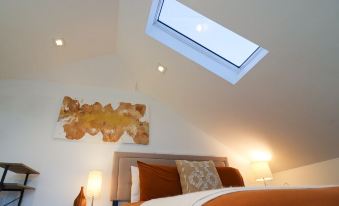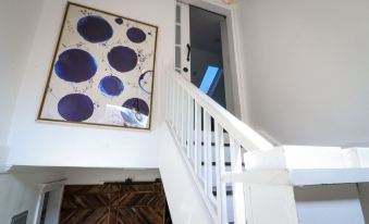 Step inside and make your way up to your sanctuary, passing by a Chandelier that gracefully adorns the entrance, casting a soft, welcoming glow. This charming detail sets the tone for your stay.