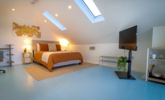 The Private Blue Room in the top unit is a cozy haven, a place where relaxation takes center stage. Sunlight streams through the Beautiful Skylights in the ceiling, infusing the room with a gentle radiance. At night, these skylights reveal a mesmerizing view of the starry Georgia skies, adding a touch of enchantment to your stay.