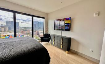 Located in Atlanta, this brilliant apartment boasts 2 cozy bedrooms - one with a king bed and the other with a queen bed. With 2 bathrooms equipped with a shower and bathtub, guests can relax and unwind after a day of exploring. Enjoy the convenience of amenities like a hair dryer, WiFi, and a washing machine. View midtown from your high floor apartment. The building has a social/play area for adults to grill and pool to cool down in, when hot. Fitness center to stay in shape and a coffee shop in the lobby with work stations and a cozy library to relax and read. conveniently walk to shops and restaurants and if you want to stay in, there are fire pits and fireplaces on the deck area to enjoy the evening. Parking is secured and free.About pets:No pets allowed.About children:Children allowed: ages 0-17.About customRules:Must send a text with the reason of coming right after the booking is made.You must leave the property promptly at 11 am. If, not it is considered trespassing. A fee will be imposed..About smoking:Smoking is not permitted.About events:No events allowed.