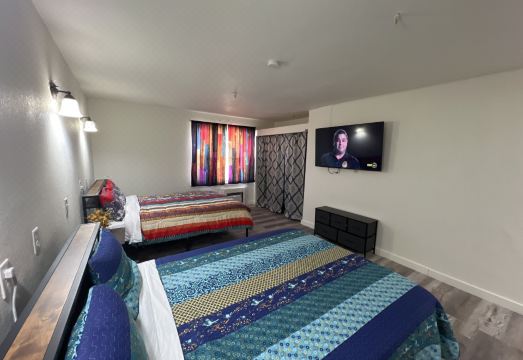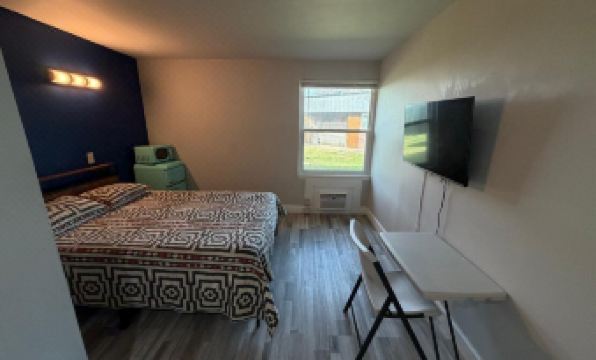 The room was not as pictured by the property. Room was furnished with a bed, tv, microwave, mini fridge, a cheap metal and plastic folding chair, folding tv tray, and basic chest of drawers. The sheets were dirty and stained. The shower was filthy and had hair on the wall. The bathroom was set to be shared with the neighboring room, but had locks on it to restrict access to the one room. The ceiling light didn’t work. There was a door to the adjacent room (which could optionally share the bathroom) which had no lock and was repeatedly opened. It was partially open when I first got to the room and I closed it. When I noticed the lack of a lock, I tucked something along the edge to see if it stayed closed or not. I went out to get dinner and coming back to the room I found that the door was partially open again. I then tied the doorknob of that door to the chair and then placed my full oversized duffel bag in the chair. Trying to prevent it from opening since there was not a lock. I had tried to make the best of it. Secured the room as best I could, got the sheet from my bag so I didn’t have to sleep in someone’s dirty sheets, and decided I could get something to clean the shower with in the morning. The door tied to the chair remained closed during the night. When I was out the next day though, it was again opened. Pulled from the other side. Not a private room. Going to clean the shower, I discovered roaches. They quickly ran back into the wall. I immediately packed and left.