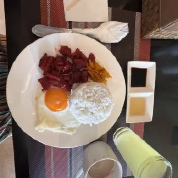 Not the best breakfast I had in Baguio. I was expecting more, like a buffet dahil nga sa price or atleast more appealing breakfast. Hindi mainit yung fried rice na naserve samin, so a little disappointing. Yung ulam is so-so lang din. I hope that can be improved.