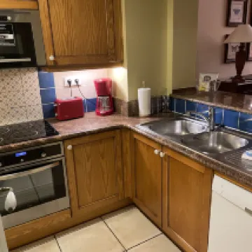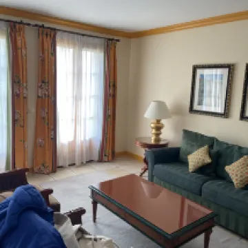 The front desk staff is very helpful and friendly. The whole apartment is fully equipped with a nice kitchen and big living room and dining room. We had a wonderful and relaxing memories there, walking by the lake and sitting in the backyard for a glass of wine. The small food market in the resort offers basic but enough for the family to spend a few days in the resort instead of going out for a food shopping.