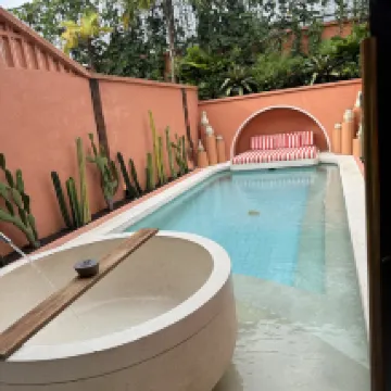 Great service, beautiful decor and furnitures and pool area is the best part. Loved the interior decor. Great place for good pictures. Loved loved the ambience. The staff were very welcoming and friendly. Service is top notch. Loved the smart features of the villa.