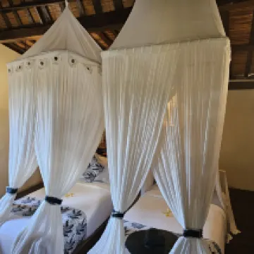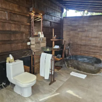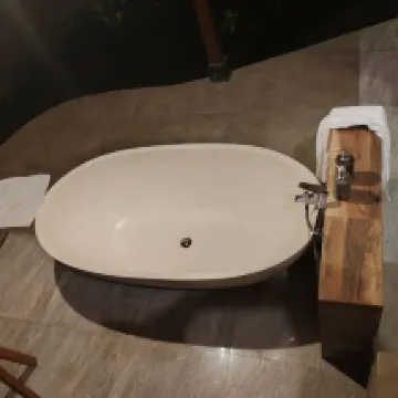 My friend and I stayed at KajaNe Yangloni for two nights. I booked what I thought was a normal hotel room, but when we got there, we were taken to a Kambang, which was amazing! We absolutely loved it. The accommodation was divine! We had never stayed in a wooden house on water before with outdoor bathroom facilities. The beds were super comfortable, and the outdoor bath area was to die for. We felt at peace and loved every minute of our stay. The breakfast was delicious. Our stay included an afternoon tea on both days. Definitely value for money. The grounds were more than adequate. I chose this location as we travelled from the UK; which took us 22 hours, and felt we'd need some tranquillity before visiting the rest of the island. Personally, I would have happily stayed there for a week! I would highly recommend this hotel. The staff were very accommodating and friendly. The turn down service was a nice touch. This hotel comes highly recommended.