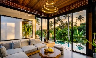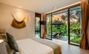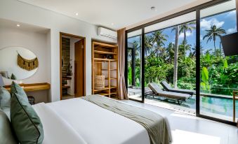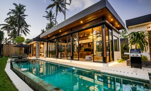 Welcome to Villa Solis, a serene 2-bedroom retreat in Peliatan, Ubud. Designed for tranquility, each bedroom features a private bathtub, Smart TV, and cozy furnishings for ultimate relaxation. The open-plan living space connects effortlessly to the pool and outdoor lounge, perfect for sunset views and barbecue evenings. Enjoy a refreshing swim, unwind in the romantic outdoor seating, or recharge in the yoga shala and gym. The villa blends natural beauty with modern comfort, creating an ideal space for families or couples. Daily housekeeping, pool, and garden care are included, with extras like in-villa dining, massages, and activities available. Note: the villa embraces open-air living to invite Bali’s tropical breezes. Max 4 guests.This villa is for 4 people, but the maximum capacity is for 5 people which means that the 5th is counted as extra guest.