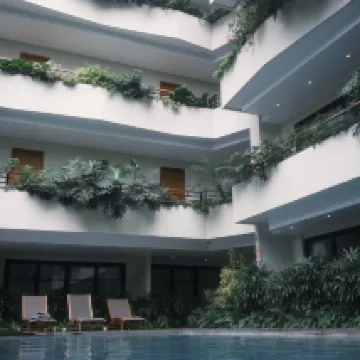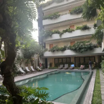 The hotel was good. We arrived after Ubud for a 6-day stay. At first, it felt like we were living in an anthill, but the incredibly friendly staff and their attitude completely changed our perception of the place. We came during the rainy season, but luckily, we had great weather for the first five days in Canggu. On the last day, a heavy downpour started, and our room flooded from outside (we were on the 3rd, 4th, and 2nd floors). Each time we got flooded, they gave us a better room and moved us, only for that one to flood too after a while. So, we ended up switching three rooms in one night. Towards the end, a gecko even ran into our room, but we were too exhausted to look for it. All in all, we enjoyed our stay, despite the stress we went through. The staff was always there for us. We sent our clothes to the laundry service, and they ruined everything – it's definitely not safe to use!