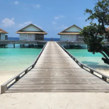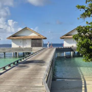 Beautiful resort in the picturesque Maldives. It's only about a 15-minute speedboat ride from the airport, check-in was quick, and the room was incredibly spacious. The daily housekeeping was very thorough, and the bedding was great, ensuring a good night's sleep every night. The breakfast offered a wide variety, so both adults and kids could find something they liked. Dinner was also good, with different options available each evening. The bartenders at the beach bar made excellent drinks, and the evening entertainment was varied and lively. The hotel beach area was lovely too, perfect for snorkeling and fish-spotting, or just relaxing on a beach hammock. 👍