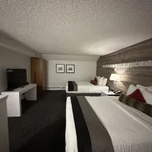 Great location, walkable to all the shops, in the town centre of Banff! The room was comfortable for a family of 4, the shower was decent. I like the spaciousness of the loft when you have so many luggages. The hot chocolate station in the evening is a nice touch. There is a famous farm & fire restaurant in the hotel which we didn’t get to try. The indoor parking is $5 CAD.
