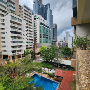 Location is great, close to BTS Nana, many choices for food nearby. Room is good, bed is very comfy, balcony is superb for smokers, wifi is fast! The only thing that has room for improvement is the bathroom, counter space is way too small, no place to put stuff, no shelving in the shower for anything, extremely low water pressure, and the e-boiler for hot water is difficult to control to set the water temperature right. Overall I would go back to stay.