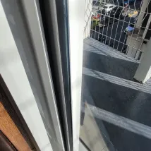 The shower has no door or screen so the whole bathroom gets unsafely wet. (see pic)