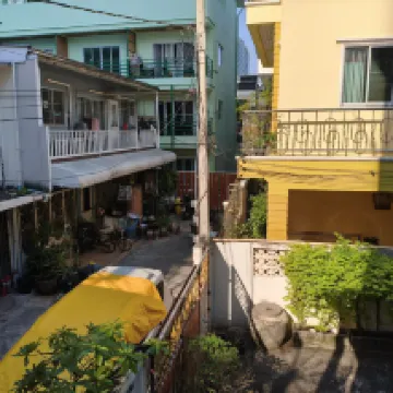 The hostel is about an 8-minute walk from two different Skytrain stations, and there's a 7-Eleven near each station, which is very convenient for buying things. You can call a taxi right outside, or walk through a small alley to the main road, which is quieter.
