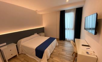 Nos encantó, todo muy bien. La habitación que nos tocó creo que fue la 1, daba la ventana a la calle y a pesar de ello no se sentía mucho ruido. La habitación limpia y bien de tamaño en general. Ubicación magnífica. No ofrecen servicio de comidas, pero en la recepción tiene una cafetera y algún dulce que puedes servirte si quieres, gratuito, también agua. La atención y amabilidad del personal también bien. Volveremos.