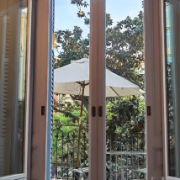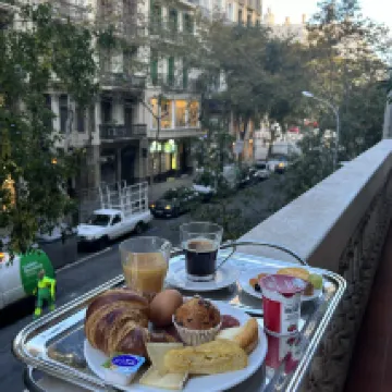 Beautiful apartment in a great location. Our room was large, the bed was comfortable, the staff was helpful, and the breakfast choices were fresh and varied (unless you are looking for a hot breakfast.) We did not use our balcony, which overlooked the street; if I return to Barcelona I’ll stay here again and request a room with a balcony overlooking the courtyard.