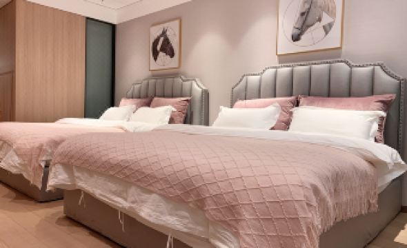 Light Luxury Family Two-Bedroom Three Beds (Cooking Allowed, Fridge, Washing Machine)