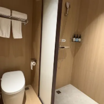 The location is great and easy to find, very close to the train station, just one subway stop away. However, I felt the bathroom's anti-slip wasn't very effective. Overall, it's pretty good. There are also many small restaurants nearby, and it's right next to a bus stop, though driving here might be inconvenient.
