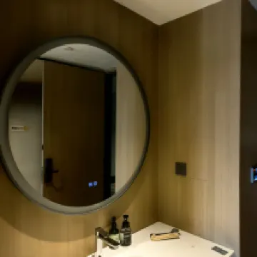 This boutique B&B boasts an excellent location, just 300-400 meters from the subway, with a park nearby. The rooms are stylish and minimalist, featuring smart, modern amenities. The bedding is clean, and the latex pillows are incredibly comfortable. The electric curtains, smart toilet, and robot concierge were particularly impressive.