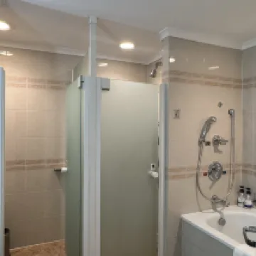 I stayed in an Executive Twin Room. The beds weren't huge but were very comfortable. The bathroom had a separate shower and bathtub, with ample space. The elevator requires key card access, ensuring guest safety.