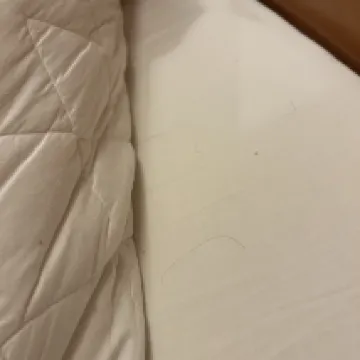 Don’t really know what to say! It felt bad to stay here! Big stains on the carpet, walls, curtains. Hasn’t been updated for 25 years or more. I really felt there was going to be bed bugs (there wasn’t - maybe. Anyway I wasn’t bitten. The good thing was that the sheets were clean.) I lifted them up and saw lots of other people’s hair. Also a picture of what I found when I pulled up the sheets, I don’t know what it is. Also in the shower, on the phone, and on the walls, other people’s hair. Felt like time travelling to the 1990s.