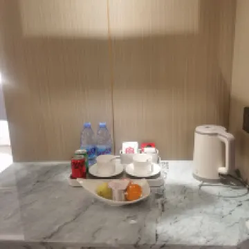 Just about 10 minutes from the airport, super convenient! They offer an airport shuttle service, and the car was spotless. The hotel staff were friendly and well-trained. They even provided a small fruit platter and a souvenir gift, which shows great attention to detail. There's also a late-night snack service, which is a really thoughtful touch! The room was very clean, which is something I highly value, and I had a wonderfully comfortable rest.