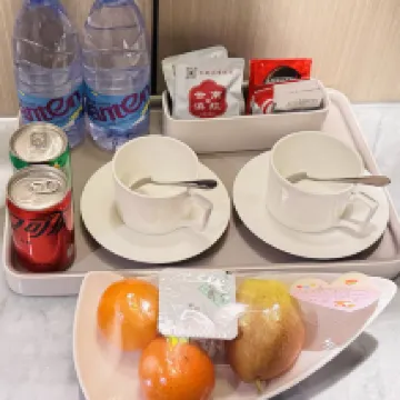 I had an 8 AM flight the next day, so I came to Beijing a day early. When I booked, I mainly chose this hotel because it was close to the airport, which I thought would be convenient. Little did I know, this hotel was full of surprises! First, I arrived at 12 PM, and the front desk staff helped me check in early and even upgraded my room type. After checking in, since I had two oversized suitcases, a very handsome young man helped me take my luggage to the room. Once I got to the room, there were already welcome fruits, yogurt, drinks, and bottled water waiting for me. The room was extremely clean, fully smart-enabled, and the soundproofing was excellent. You think that's it? No way!!! They offer free late-night snacks in the evening. Although I didn't get to try them, I saw quite a few people in the restaurant when I walked past it later that night, and it smelled delicious! And there's more! I booked the airport shuttle for 6 AM, and at 5:30 AM, the front desk called to remind me to gather in the lobby on time. When I went downstairs, the lobby staff greeted me and gave me a departure gift: a pack of tissues and a few steam eye masks. How incredibly thoughtful is that?! I just casually mentioned that I was flying international from T3, and they even prepared for that! All for just over 300 RMB, their service is absolutely amazing!!! I'll definitely stay here again next time I fly out of Beijing!!!