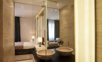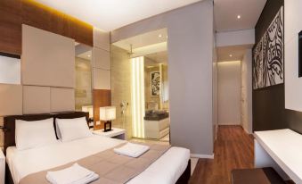 The elegantly designed suites consist of a flat-screen cable TV and a mini-bar. Complete with an electric kettle, the dining area also has a coffee machine and a dining table. Featuring a shower, the bathrooms also come with a hairdryer and a bathrobe. Bathroom glass walls have not transparent screens which provide privacy.