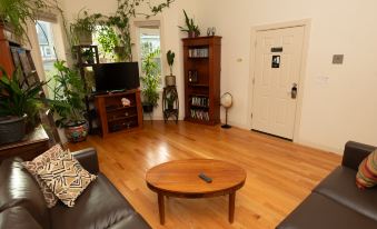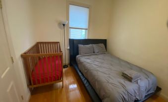 This high-ceiling furnished 2-bedroom Egleston Square Condo in Jamaica Plain offers accommodations along Boston's Orange line subway. The kitchen has stainless steel appliances including a dishwasher, a gas stove, an oven, and a microwave. There is also a steam kettle, electric kettle, Bodum, toaster, blender, and more. The living room has a flat-screen TV with cable channels as well as Netflix & Amazon Prime. All sheets, linens, towels, as well as a crib, WiFi, laundry machines, parking and central heating and air conditioning are included.