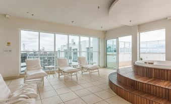 There was a convenience store in the lobby on the first floor, selling drinks, snacks, and instant noodles. The rooftop features spa facilities, a gym, a pool, and a water station, and the view of Brasilia's cityscape from the rooftop was beautiful.