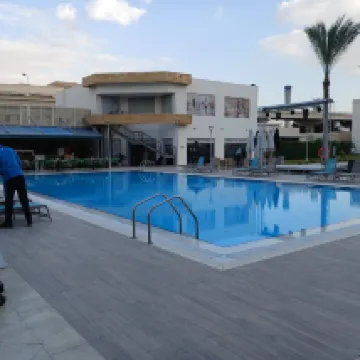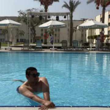 This hotel is located 5 minutes from the airport and is definitely one of the best mid-Price options in the area for a long layover or short stay. The location is NOT great if you want to see the pyramids or museums but great for being near the airport. The pool area is quite nice with a bar next to it and spaces to sunbathe.