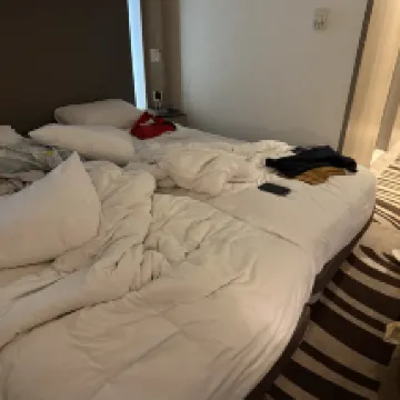 Terrible experience from start to finish. Check-in took half an hour of waiting in line. When I first got to the room, it was dirty and hadn't been cleaned. The front desk staff were unhelpful, and even the complimentary breakfast was unappetizing.