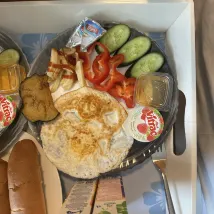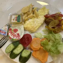 The room is comfortable enough with working AC and good size bathroom, but be prepared for the noise of traffic from outside as it’s close to a main road. Wifi also didn’t connect well in our room but maybe better for others. Breakfast is simple and more Egyptian/Arabic in style with pita, falafel, cheese and eggs + juice box.