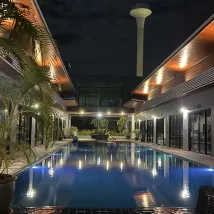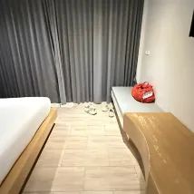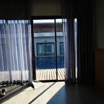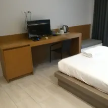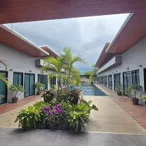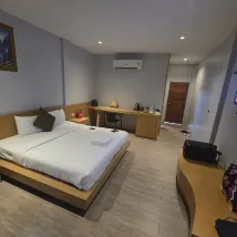 The room is spacious but there is no place to hang clothes. There is a wardrobe but no hangers. They charge a 500 baht deposit for the key even though I stayed in the accommodation and didn't go out. The place is quiet. If you just want to sleep, you can stay here. But there are not many amenities. It is clean and usable. There is a swimming pool. The accommodation is not on the beach.
