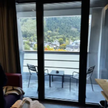 The hotel is excellent, with friendly staff and a perfect location. I believe it offers the best views of the mountains, city, and river in the village. My only concern is the cleanliness; it could be improved. The overall cleanliness is about a 7/10, as there is visible dust in the corners and some dirt. Other than that, I absolutely love the hotel.