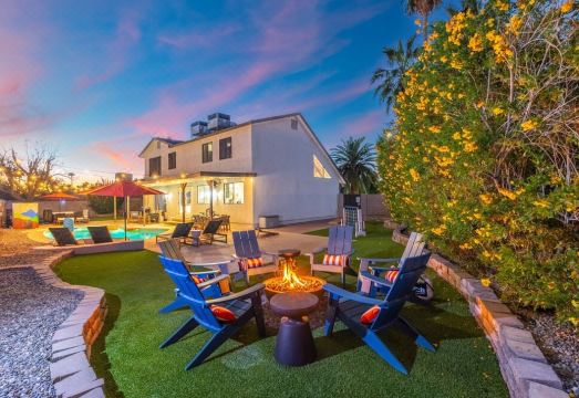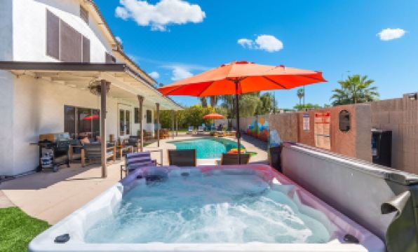 This gorgeous, newly renovated, professionally designed, 5 BR home has classic Southwest charm and is sure to please all! Our spacious living area, kitchen and dining areas flow seamlessly with great backyard views and lots of inviting, cozy visiting spaces. The sprawling game room with AC has a HUGE 75" TV, pool table, popcorn maker, arcade games and mini bar and those who prefer the sunshine will enjoy our poolside lounges, putting green, hot tub, heated pool and fire pit area! Don't wait to book or you might miss out on this gorgeous new listing!