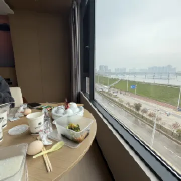 This high-end hotel in Chaozhou is very nice. The hotel lobby is spacious and grand. When I arrived at the hotel, I was helped to carry my luggage up the stairs. The front desk lady was warm and enthusiastic. The manager also gave me a box of Chaozhou Three Treasures. The room was clean and tidy and there was a bathtub for bathing. The river view was opposite the hotel, with a wide view. The breakfast was also delicious. I especially recommend the rice noodle soup, which was delicious and affordable. I will choose this hotel next time I come.