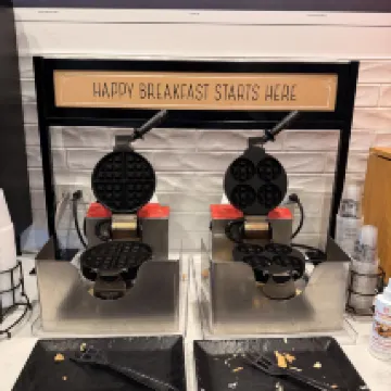 You can park your car for free and also make your own waffles at the breakfast time.