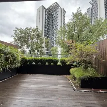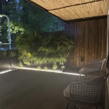The front desk was incredibly responsive, always ready to assist with requests like room cleaning or providing anti-itch cream and mosquito patches. The greenery in Jiumu Courtyard was clearly well-maintained, looking beautiful and neat, not overgrown with weeds. It was lovely to watch little birds land on the terrace after the morning rain these past few days. Despite being located near the road, it was surprisingly quiet. The terrace was a wonderful bonus, especially for those with children or guests who smoke. Plus, there were many fantastic eateries nearby, all within easy walking distance.