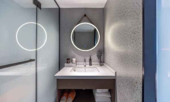 I booked a standard king room. The room was clean and tidy, with a simple modern design. The natural light and ventilation were excellent. The bedding was soft and comfortable, and the mattress provided great support, so I slept soundly all night. The bathroom had a separate wet and dry area, and the toiletries were well-stocked. Hot water supply was stable, and the attention to detail was impressive.