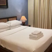 Clean comfortable, near tourist spots. Inside town surroundings with shops restaurants. Not far from mean road. Nice place to stayed.