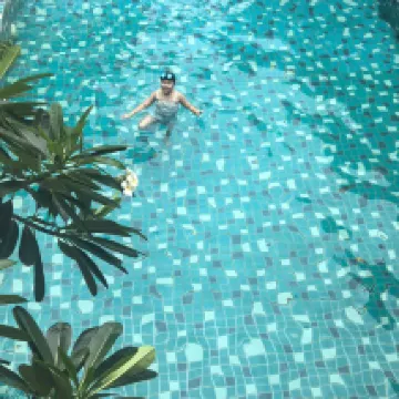 Came to Chiang Mai for a marathon. After the race, I came here to relax. This hotel has a gym, which was great for stretching and relaxing! The room opened up to a clean swimming pool, and there's also a swing for some chill time.