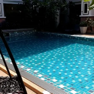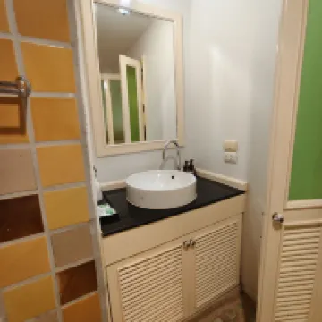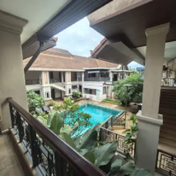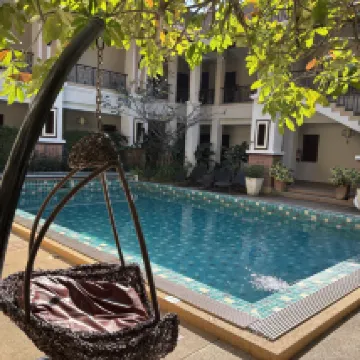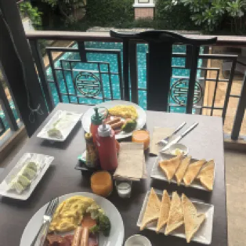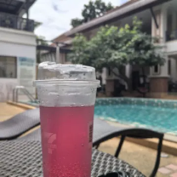 This place was great! We stayed for several nights and it was very quiet. Being on the ground floor, it was super close to the pool from our room. For breakfast, they offered both American and Thai options, and we tried each for two days. Outside on the street, there are also breakfast spots, coffee shops, and a 7-Eleven, which was incredibly convenient. There were about 6-7 staff members, some of whom didn't speak English but always greeted you with a smile.