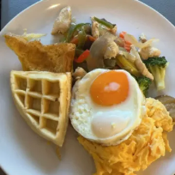 Breakfast was good except nothing is cooked there, eggs are always cold, pretty much a candle under the servicing pans. This method is ancient and not commonly used anymore.